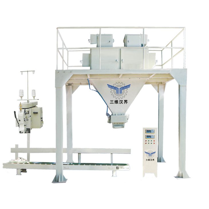 bag hanging,bag holding, weighing, folding, seaming, conveying and palletizing, it achieves the unmanned operation. For the finished stack packaging, can be delivered by forklift. Gravity feeding, controlled by instruments to guarantee the speed and precision of feeding.
