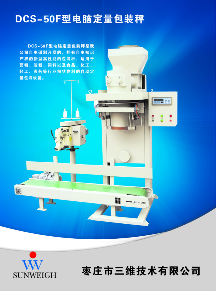 Zaozhuang Sunweigh Technology Co., Ltd. specializes in the production of calcium carbonate quantitative packaging machine, automatic packaging machine, high-level palletizer, palletizing robot, automatic bagging machine and other packaging equipment. The powder calcium carbonate quantitative packaging machine DCS-50F produced by the company has been trusted by customers for many years for its excellent quality and stable performance, and has been widely used in fine chemical industry, flour, starch, feeding. Material, medicine, carbon black and many other fields.
